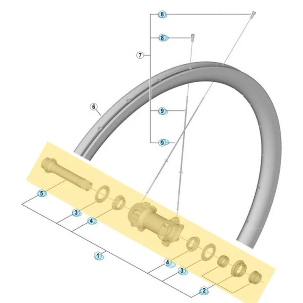 Axe complet de moyeu avant Shimano Dura-Ace WH-R9170-C40-TU-F12.