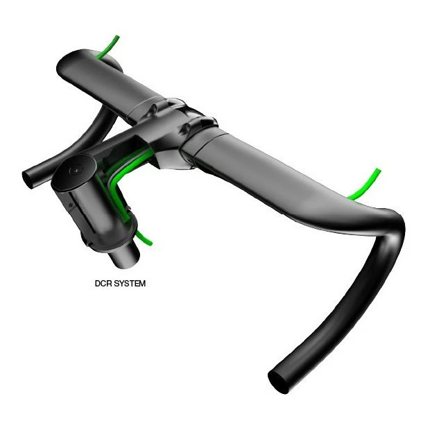 La potence Deda Elementi Vinci 31.8mm est la première potence conçue pour une intégration complète des câbles avec le cintre Deda et son nouveau système DCR (acheminement interne des câbles Deda). Le système DCR fonctionne avec une potence conique standard de 1-1/8″ de diamètre supérieur, mais nécessite une cote de 52mm (1,5″) pour le roulement supérieur du jeu de direction. La potence laisse de la place à l’arrière pour que les câbles puissent s’insérer dans l’espace entre le roulement du jeu de direction et la fourche.