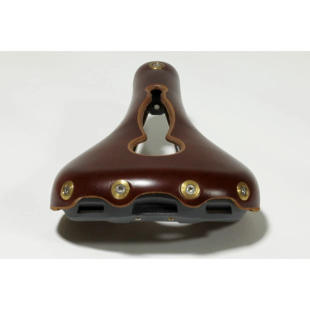 Entièrement DEMONTABLE grâce à un astucieux système d’assemblage du cuir sur l’armature, assuré par des vis en acier inoxydable dont les têtes se logent dans des coupelles en laiton. Ces coupelles de forme intérieure conique s’encastrent dans les logements emboutis dans le cuir, assurant ainsi un maintien parfait de l’ensemble.